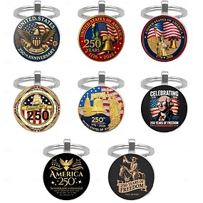 Conjunto de 8 chaveiros comemorativos dos 250 anos de liberdade dos EUA, em liga de zinco. &vidro cristal, história americana &símbolos patrióticos, bandeira dos EUA &Presente de lembrança do Dia da