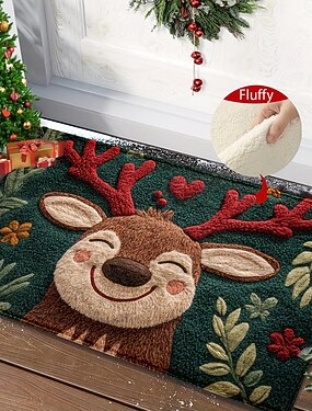 Tapete de veludo cristal natalino macio &Tapete aconchegante para entrada, fácil de limpar.