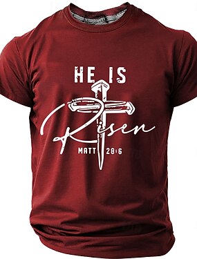Camiseta masculina de cor sólida com estampa da cruz de Jesus, manga curta, gola redonda, estilo vintage retrô, para uso diário em festivais, nas cores azul, preta e bordô, ideal para verão e