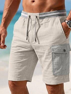 Homens Calção Shorts de linho Shorts de verão Shorts de praia Com Cordão Bolsos Cintura elástica Côr Sólida Bloco de cor Cor Única Conforto Respirável Curto Casual Diário Praia Férias Moda