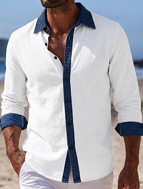 Homens Camisa Social Camisa de linho camisa de verão Roupa de Praia camisa de praia camisa de botão Bloco de cor Férias Feriado Azul Preto Branco Rosa Manga Longa Aberto para a Lateral Verão Primavera