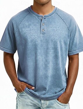 Homens Camisa Henley Camiseta de algodão T-shirt Manga Curta Côr Sólida Moda Designer Casual Tingimento em peça Desaparecido Botões Henley Casual Diário Ao ar livre Verão Primavera Todas as Estações