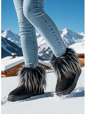 Botas de inverno femininas com forro de pele sintética - modelo plataforma quente e antiderrapante, ideais para clima frio e atividades na neve.