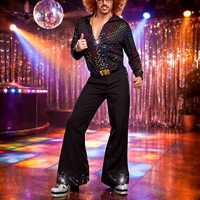Retro Vintage Discoteca Anos 80 Calças Camisa Manga Comprida Discoteca Fantasia Homens Fantasia de Carnaval Baile de Máscaras Carnaval Espetáculo Parada do Orgulho Mês do Orgulho Adulto Camisa Calças