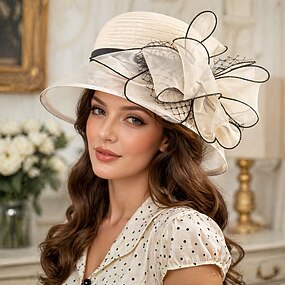 Chapéus Chapéu de Sol em Organza Festa de Chá de Férias Corrida de Cavalos Coquetel Elegante Vintage Fofo com Acessório Floral para a Cabeça
