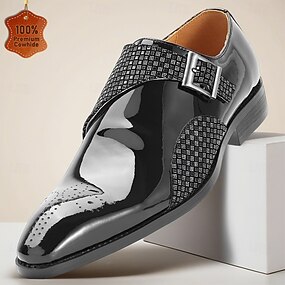 Sapatos sociais masculinos de couro legítimo premium, pretos, com fivela de fivela e painel texturizado, calçado de luxo para ocasiões formais, como negócios, casamentos, escritório, banquetes e eventos sofisticados à noite.