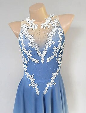 Vestidos para Patinação Artística Mulheres Para Meninas Patinação no Gelo Vestidos Azul Patchwork Thumbhole Com Transparência Elastano Elasticidade Alta Treino Competição Roupa para Patinação