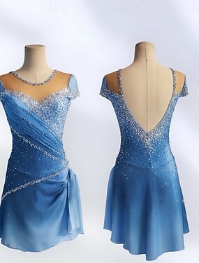 Vestidos para Patinação Artística Mulheres Patinação no Gelo Vestidos Azul Céu Patchwork Sem costas Com Stretch Treino Competição Roupa para Patinação Clássico Cristal / Strass Manga Curta Patinação
