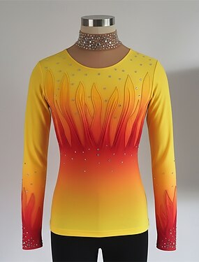 Top de patinação artística Homens Patinação no Gelo Tops Amarelo Patchwork Com Stretch Treino Competição Roupa para Patinação Clássico Cristal / Strass Manga Longa Patinação no Gelo Patinação
