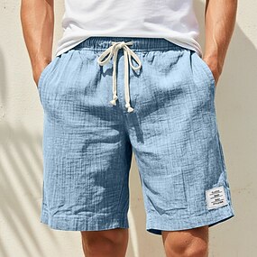 Homens Shorts de linho Shorts de verão Shorts de praia Com Cordão Cintura elástica Perna reta Tecido Conforto Macio Comprimento do joelho Diário Praia Moda Chique & Moderno Preto Branco Sem