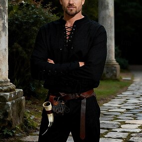 Retro Vintage Punk e gótico Medieval Armas e Armaduras Roupa Viking cavaleiro celta Ranger Elfo Tiro com arco Fantasia Homens Dia Das Bruxas Baile de Máscaras Carnaval Espetáculo Adulto Blusa Cinto