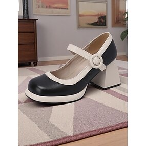 Sapatos Mary Jane de salto grosso preto e branco para mulheres – sapatos de estilo retrô dos anos 1950 para looks de escritório e festas modernos