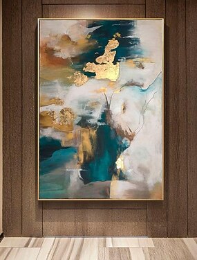 Pintura a óleo abstrata feita à mão em tamanho grande com folha de ouro sobre tela, pintura moderna sem moldura, arte de parede para decoração de casa