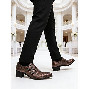 Sapatos masculinos marrons de couro sintético com fivela dupla e design estampado, elegantes para casamento, perfeitos para o noivo e convidados.