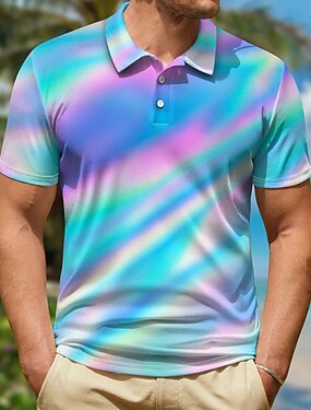 Homens Cores Gradiente Pólo Manga Curta Camisas polo Camisas de colarinho Casual Escola Ao ar livre Roupa Diária Home Wear Impressão 3D Verão Primavera Outono Azul
