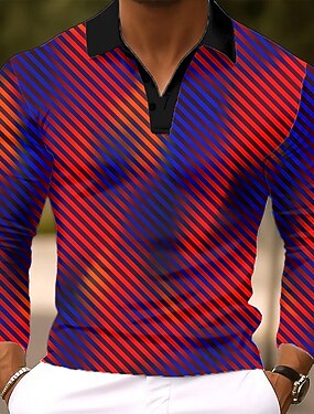 Homens Riscas Polo de malha trançada Manga Longa Camisas polo Camisas de colarinho Casual Ao ar livre Roupa Esportiva Impressão 3D Primavera Outono Vermelho