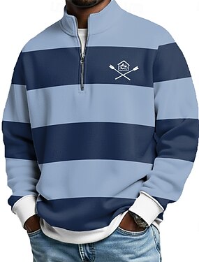 Homens Tiras Horizontais Camisas Polo com zíper Manga Longa Camisas polo colarinho do vovô Casual Escola Roupa Esportiva Feriado Roupa Diária Impressão 3D Polo com fecho de correr de um quarto