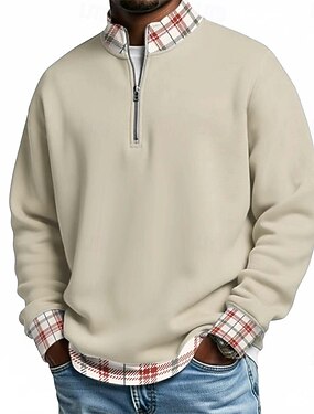 Homens Pólo Camisas Polo Férias Rua Quarter Zip Manga Longa Moda Básico Bloco de cor Patchwork Bolsos Primavera Outono Moderno Preto Verde Tropa Azul Marinha Caqui Cinzento Pólo