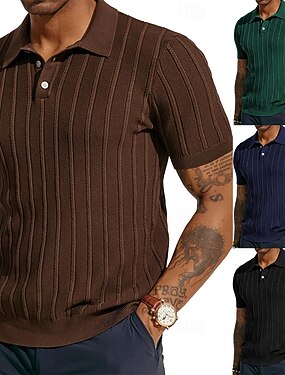 Homens Polo de malha Camisa de golfe Casual Feriado Botão Clássico Manga Curta Moda Estilo de dinheiro antigo Listrado Frente do botão Verão Primavera Outono Preto Azul Marinha Polo de malha