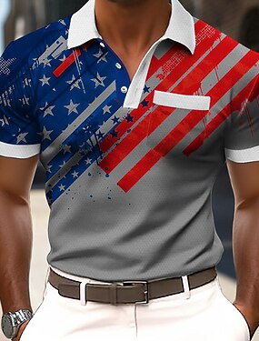4 de julho de 2026 250º Homens American US Flag Camisas Polo Manga Curta Camisas polo Camisas de colarinho Casual Ao ar livre Roupa Esportiva Roupa Diária Impressão 3D Botões Primavera Verão Azul