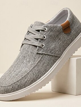 Tênis casual masculino cinza com cadarço, leve, confortável, respirável, ideal para uso diário, viagens, deslocamentos, looks de fim de semana, lazer ao ar livre e um estilo casual elegante.