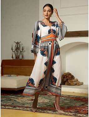 Blusa de cetim sedoso com estampa abstrata e decote em V
