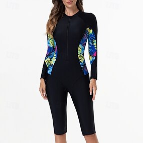 Mulheres Anti Atrito Roupa de banho Maiôs Tropical Zip Up Ultra Leve (UL) Proteção UV Elástico Manga Longa Roupa de Banho Surfe Snorkeling Primavera