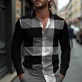 Mulheres Camisa Social Blusa Patchwork Botões Imprimir Gráfico Geométrica Xadrez Vintage Tropical Diário Manga Longa Colarinho de Camisa Tops regulares Diário Azul Preto Branco Amarelo Rosa Verão