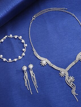 Conjunto de Jóias 3 cromada 1 Colar 1 Bracelete Brincos Mulheres Moda Conjunto de jóias Para Traje de festa para noite