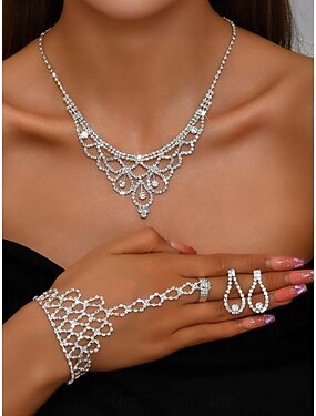 conjunto de joias de cristal para noivas femininas - colar, pulseira, anel e brincos elegantes de strass para casamentos, bailes de formatura e ocasiões formais