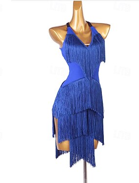 Dança Latina Vestido Mocassim Mulheres Festa Treino Espetáculo Sem Manga Elastano Fibra Sintética