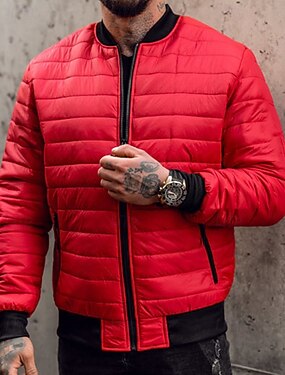 Homens Casaco de inverno Casaco puffer Bolsos Poliéster Férias Roupa Diária Encontro Padrão Moda Casual Confortável Térmico / Quente Outono & inverno Cor Sólida / Simples Preto Vermelho Azul Verde