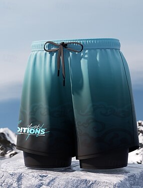 Homens Padrão Shorts de Natação Calção Justo de Natação Gradiente Com Cordão 2 em 1 Com forro de compressão Secagem Rápida Elástico Respirável Sem Manga Roupa de Banho Calças Surfe Mergulho Natação