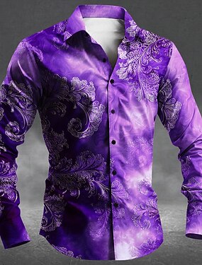 Camisa de Fantasia Masculina com Estampa Floral Camisa de Botão de Manga Longa Estilo Gótico Punk Escuro Feriado Ao Ar Livre Verão Primavera Camisa de Gola com Impressão 3D Azul Roxo Laranja