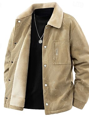 Homens Jaqueta de Inverno Jaqueta de Veludo Casaco de lã Jaqueta casual Férias Diário Térmico / Quente Bolsos Tosão Inverno Tecido Moda Roupa de rua Lapela Padrão cáqui Verde Tropa Café Cinzento