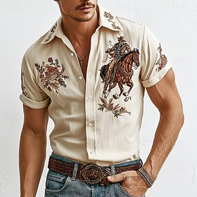 Homens Estampa floral Cowboy Flores Camisa Social camisa ocidental Manga Curta Vintage retrô Ao ar livre Férias Verão Primavera Aberto para a Lateral Impressão 3D camisas de colarinho Camisa tipo