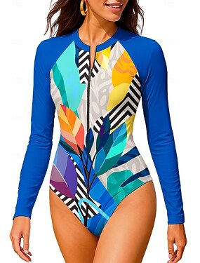 Mulheres Padrão Normal Anti Atrito Roupa de banho roupa de banho Floral Geométrica Tropical Com sutiã embutido UPF50+ Proteção UV Esticar Manga Longa Roupa de Banho Body Surfe Praia Esportes Aquáticos