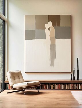 Pintura a óleo minimalista feita à mão de um casal, pintura abstrata com linhas de amor em tela para decoração romântica moderna, arte de parede abstrata de casal em tons quentes para decoração de