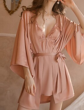 Mulheres Lingerie Sensual Casual Cor imaculada Diário Casa De Cama Rosa Claro Preto Branco Rosa Bege Verão Primavera Delgado