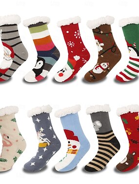 Meias de chão fofas com animais para mulheres, meias de neve de inverno felpudas e felpudas, meias aconchegantes para dormir em casa com protetores de pernas, meias macias de carpete para pós-parto