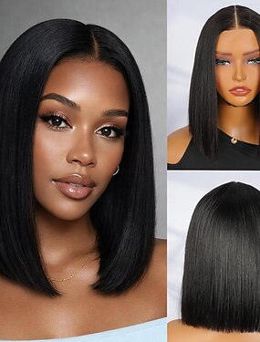 Peruca bobo curta 2x6 de cabelo humano brasileiro, cor natural, com densidade de 180%, para mulheres negras.