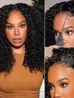 Use e vá perucas sem cola, cabelo humano pré-arrancado, peruca cacheada, perucas de renda frontal de cabelo humano para iniciantes, atualizadas, sem cola, pré-cortadas, fechamento de renda 4x4,