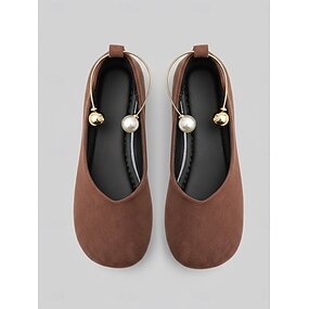 Sapatilhas minimalistas femininas cor café – modelo slip-on com bico redondo e detalhe de argola metálica, leves e casuais para viagens. &uso diário
