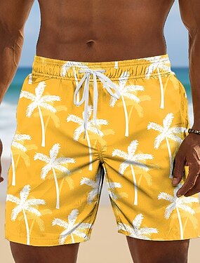 Homens Coqueiro Palmeira Plantas Tropicais Calção Justo de Natação Fatos de banho Calções de banho Bermuda de Surf Cintura Média Havaiana Ao ar livre Férias Dia a Dia Bolsos laterais Forro de malha