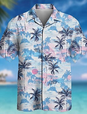 Homens Coqueiro Camisa Social Camisa havaiana Camisa Gráfica Camiseta Aloha Manga Curta Camisa Aberto para a Lateral Ao ar livre Rua Estampado Branco Rosa Vermelho Azul Verde Imprimir Botão para baixo