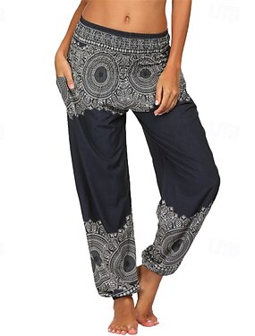 Retro Vintage Boho Anos 70 Calças Harem Calças de Yoga Hippie Cintura em Elástico Franzido Mandala Tribal Fantasia Mulheres Dia Das Bruxas Carnaval férias na praia Festa Temática Retro Festival Adulto