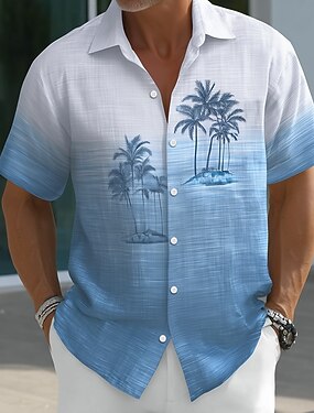 Homens Coqueiro Cor gradiente Plantas Tropicais Camisa havaiana camisa de botão Camiseta Aloha Manga Curta Havaiana Férias Feriado Roupa de Praia Verão Primavera Aberto para a Lateral Impressão 3D