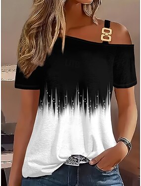 Mulheres Camiseta T-shirt Imprimir Assimétrico Floral Gráfico Geométrica Vintage à moda Clássico Manga Curta Decote Canoa Pescoço Assimétrico Tops regulares Diário Para Noite Final de semana Preto
