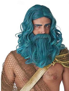 Conjunto de peruca e barba azul-petróleo Ocean King – cabelo sintético, perfeito para Halloween, cosplay &festas temáticas