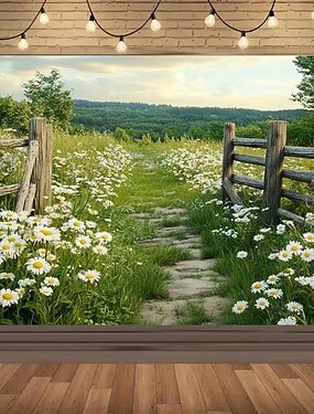 Tapeçaria de parede com paisagem campestre, flores de margarida, estilo rústico, para decoração de quarto, sala de estar, dormitório ou qualquer outro ambiente.